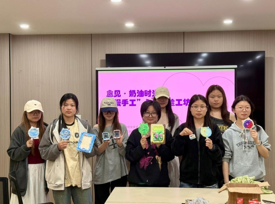 为丰富校园文化生活,引导学生在快节奏的学习生活中沉淀自我、涵养心性,有效舒缓学业压力,2025年4月13日18:00,艺术人文学院“慢手工”心流体验工坊之“愈见・奶油时光”奶油胶手作活动,在一站式学生社区顺利开展。本次活动以“聚‘胶’时光,慢享生活”为主题,通过沉浸式手工创作,让同学们在动手实践中放松身心,在绵密柔滑的奶油胶世界里,感受慢生活的治愈与美好。