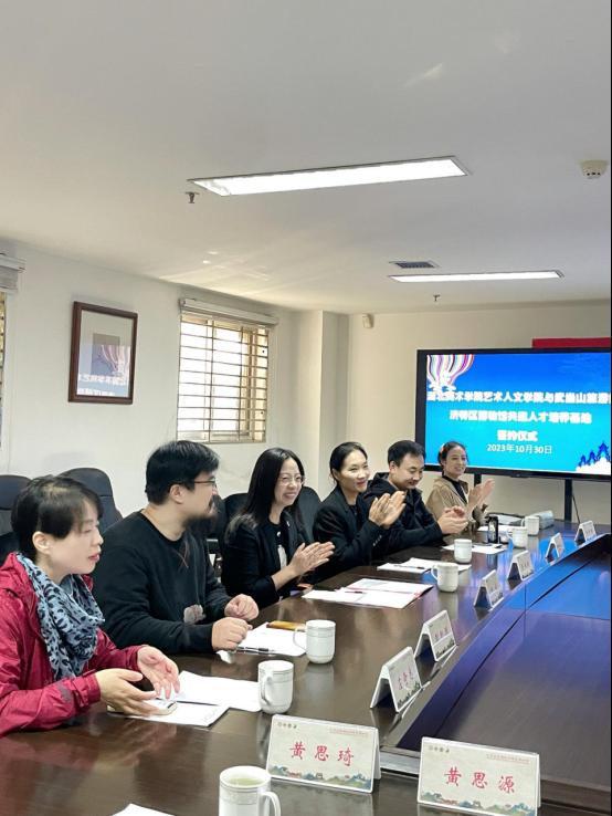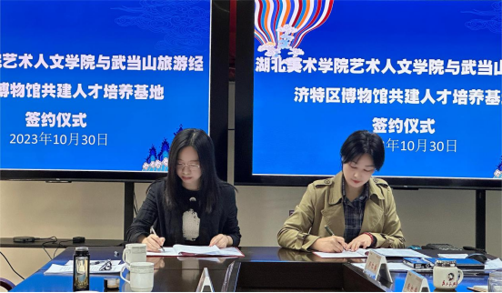 2023年10月30日上午,湖北美术学院艺术人文学院与武当博物馆共建人才培养基地签约仪式在武当博物馆举行。艺术人文学院党委书记陈美玲、院长陈晶,教师代表左奇志、耿纪朋、何慧斌,研究生代表柴姗姗、黄思源、黄思琦参加签约仪式。
