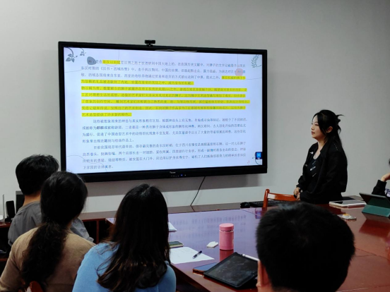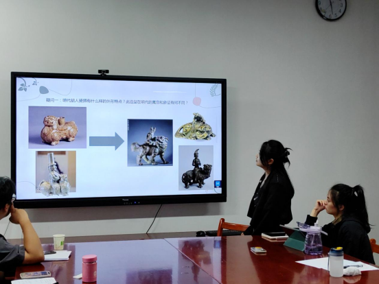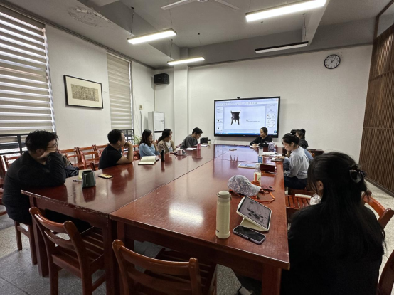 陈越首先对此次北京地区博物馆专业考察做简单总结,五位研究生依此围绕“元代螺钿漆器”“明代八仙图像”“青铜爵柱”“胡人骑狮献宝香薰”及“宋代花鸟形玉巾环”研究对象展开讨论,五位与谈老师针对同学们的汇报情况予以评议。李珊在活动总结时强调:此次考察汇报深入纯粹,同学们准备充分,并勉励同学们在此次汇报的基础上继续推进研究。