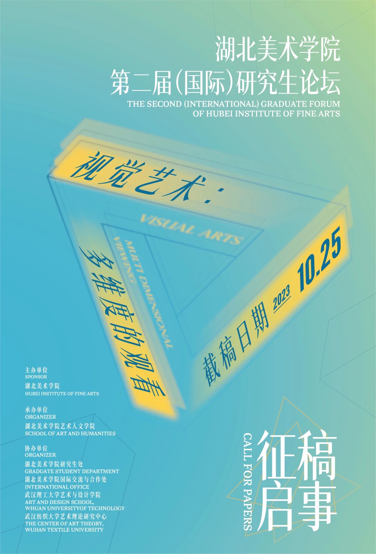 视觉艺术与人的观看活动有着天然的联系。“观看先于语言”,它不仅在于“看”的行为,还在于特定的观看思维和视角,以及在这个过程中产生的主体认知、判断与阐释。本论坛以“多维度的观看”为主题,旨在从观看方式、理论及方法等维度展开对视觉艺术的剖析和阐释。为深入探讨这一主题,湖北美术学院将于2023年11月举办第二届“视觉艺术:多维度的观看” 国际研究生学术论坛,本次论坛将继续围绕视觉艺术与观看的关系,探讨多元化观看方式对于视觉艺术研究的启示。我们欢迎来自全世界不同领域的研究生同学分享视觉艺术的最新研究、思考和实践成果。