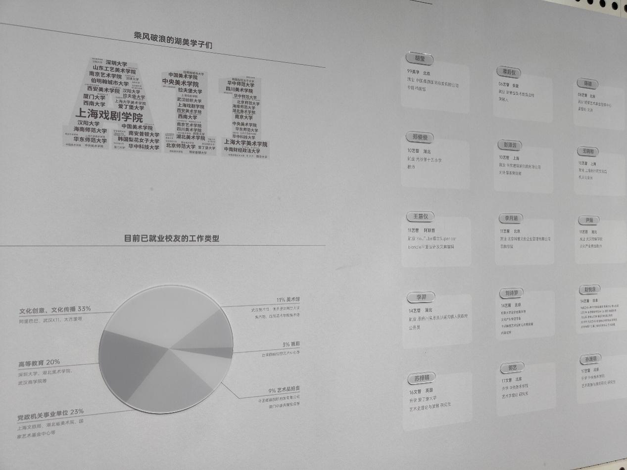 (“艺管之路”主题文献展单元三部分代表性校友墙面)