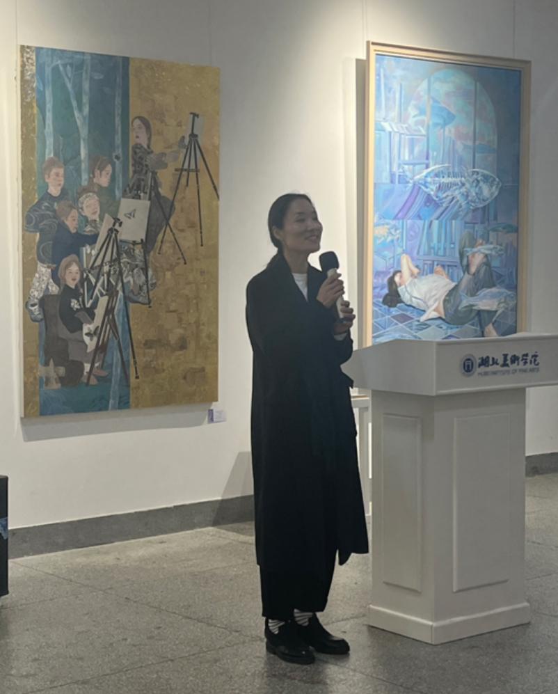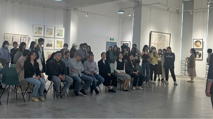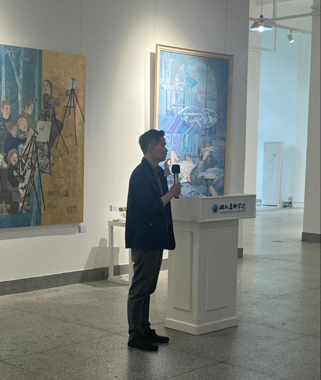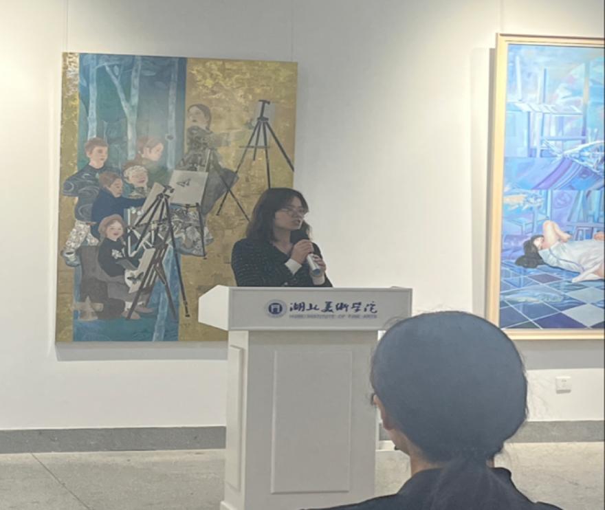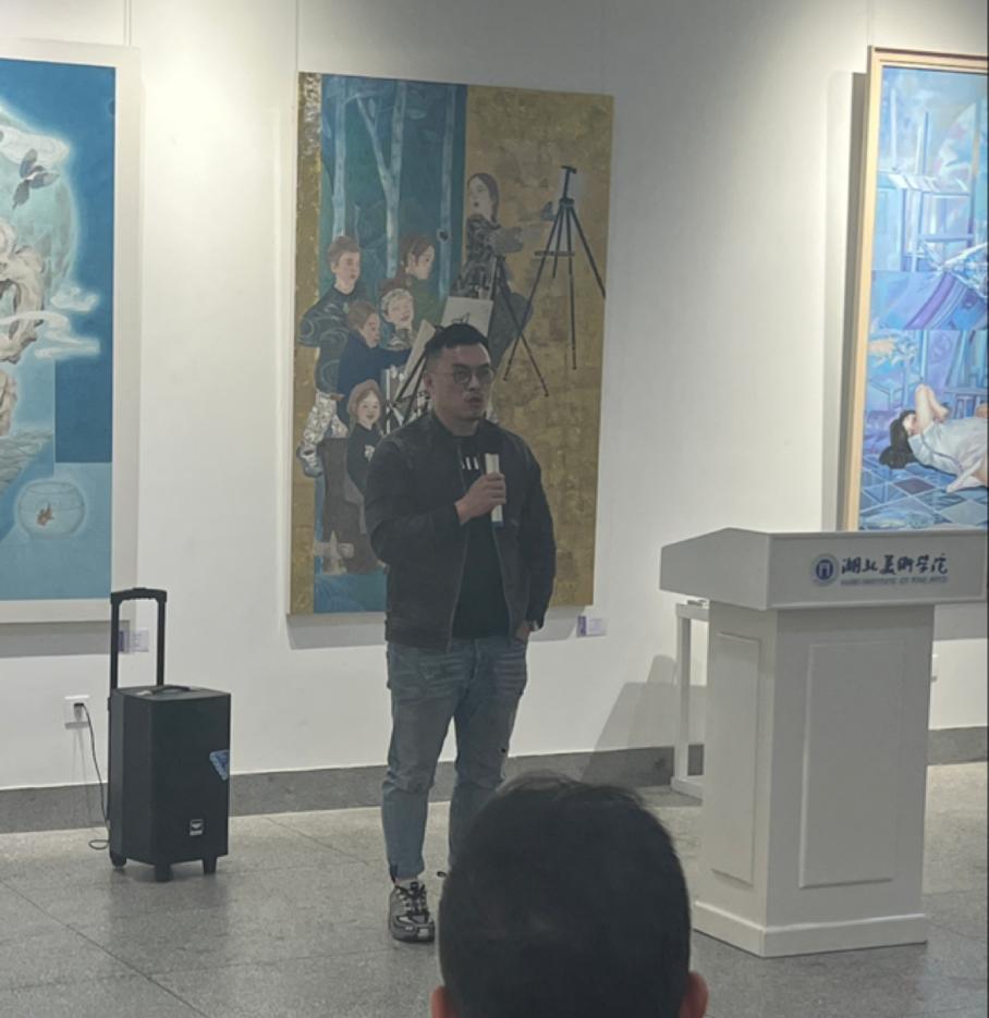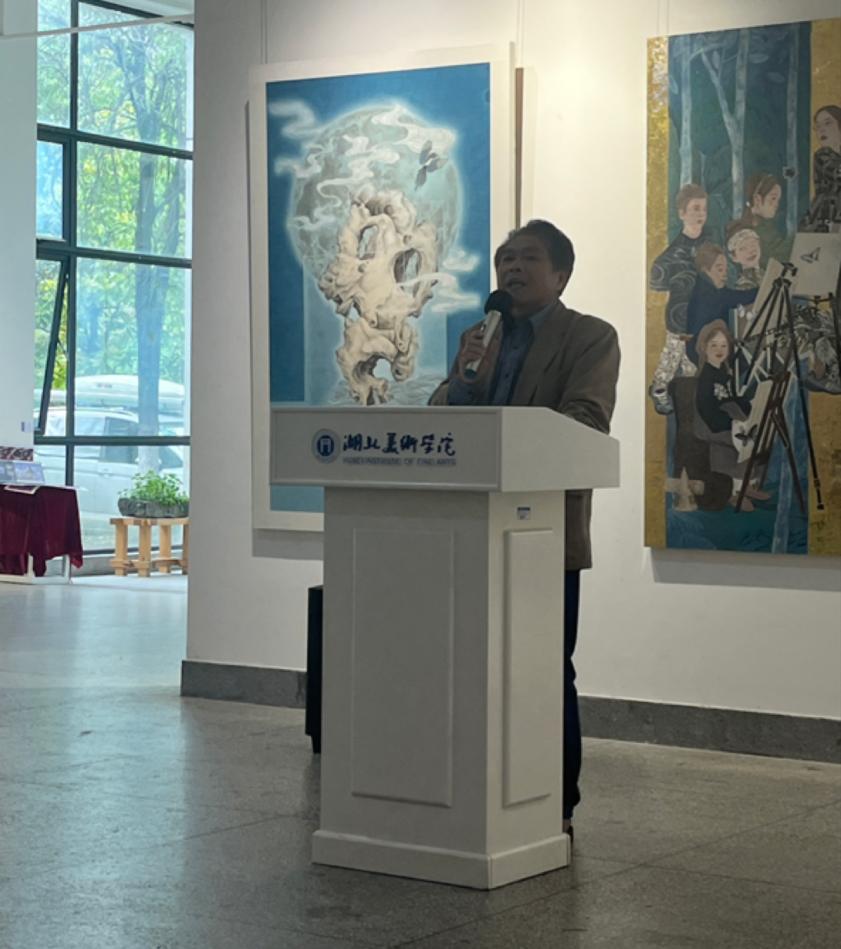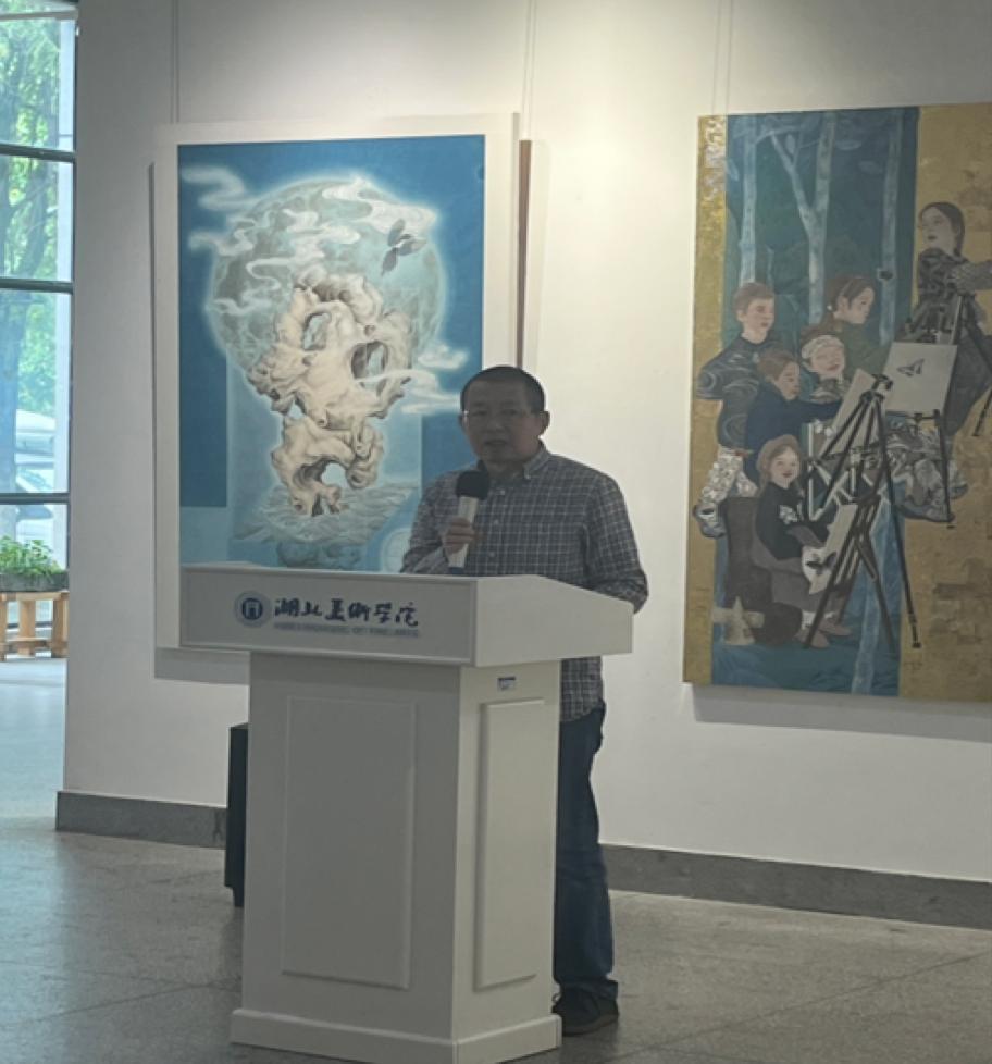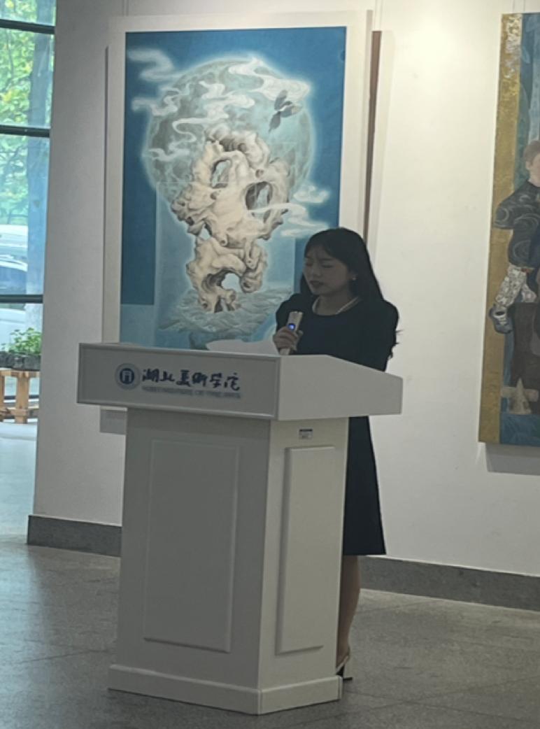 美术教育本科生毕业展内,各位老师依次上台发言,均对同学们的毕业作品提出高度认可,并对同学们的未来进行了美好的展望。讲到动情处,部分老师不禁潸然泪下。学生代表张芷璇在发言中感谢老师们的辛苦付出,并表示没有老师的悉心教导,难以诞生这么优秀的毕业作品。随后,刘院长进行总结发言,向同学们表达了最真挚的祝福,希望同学们越来越好。最后师生们一同观展,并合照记录下这美好的时刻。