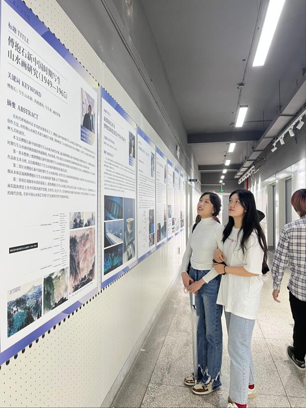 理论类毕业展览上,各位老师依次上前致辞。刘院长首先对展览的布置和同学们的毕业论文表达了充分的肯定,也指出了其中存在的些许不足,以及未来的发展方向,饱含着对艺术人文学院和同学们的殷殷期许。接着由沈老师向在场师生们传达了“希望学生队伍越来越精深,导师队伍越来越庞大”的美好祝愿。最后由石老师代表教师团体,向毕业的同学们表达了对他们未来的期望,鼓励同学们不忘初心,在专业研究上不断深造、越走越远。接下来是学生代表王思琪发言,王同学分享了自己编辑论文的心得,并对自己导师的指导表示感谢。展览中,师生共同观展,针对同学们的毕业论文展开交流。展览最后,师生聚在一起,合影留念。