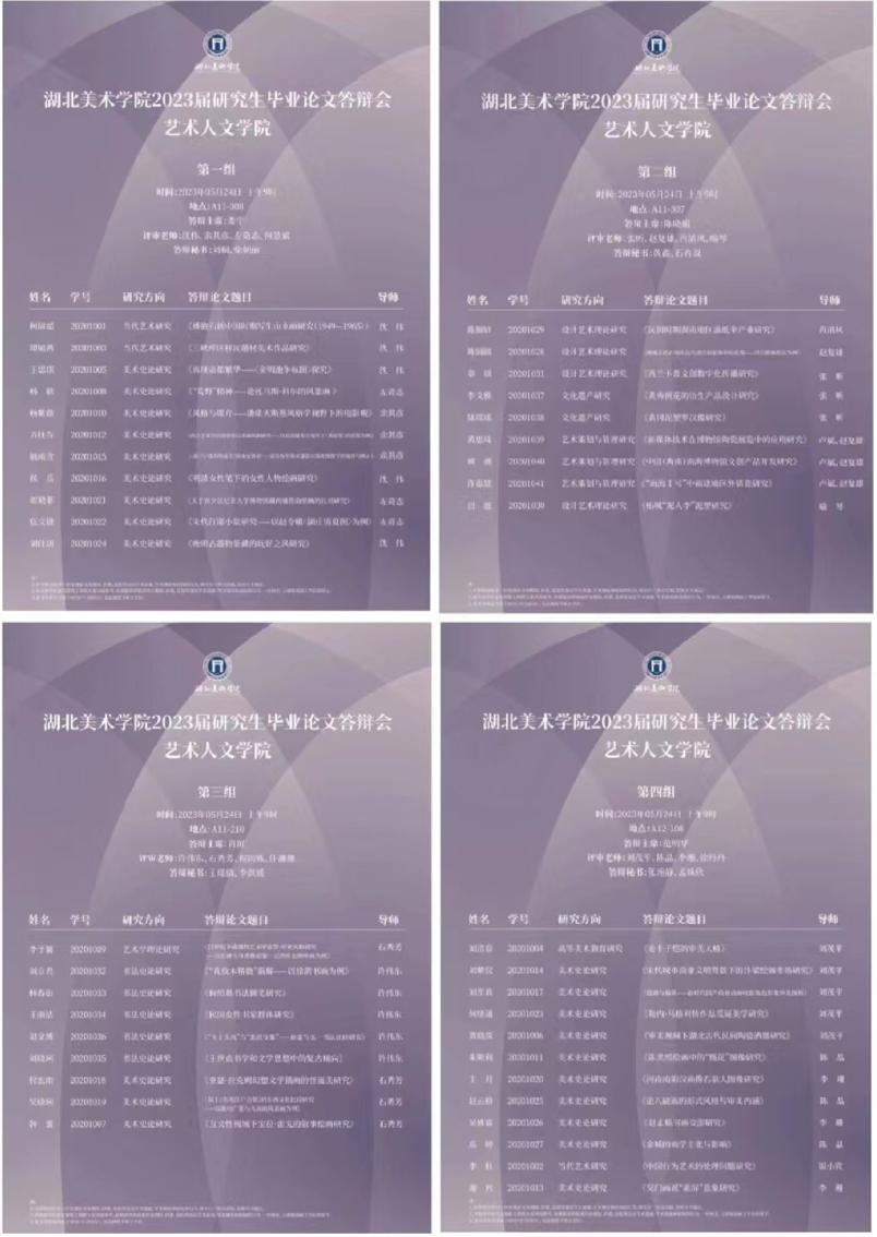 (通讯员:余筱菁)五月正值毕业季的关键时刻,作为毕业前的重要环节——毕业论文答辩也开始提上了日程。为检阅同学们三年学习成果,更好地与老师们进行学术的交流、思想的碰撞。艺术人文学院将于2023年5月24日上午9点,在A11-210、307、308和A12-108分四组开展毕业论文答辩会。