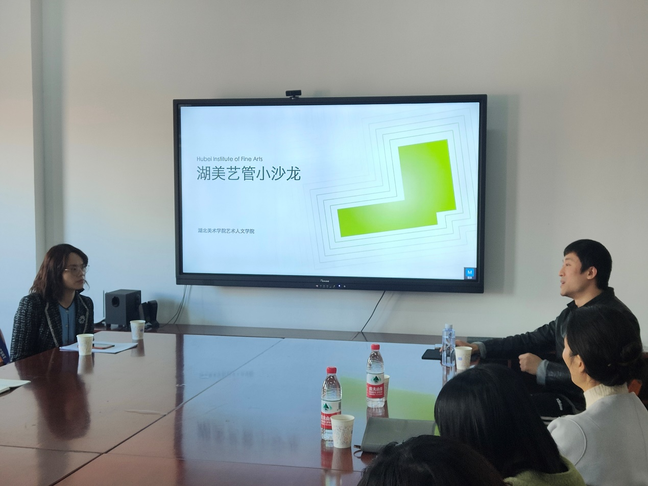 2023年3月13日9点,湖北美术学院艺术人文学院艺管小沙龙第四期在A11-308教室顺利举办。同时作为“双师进课堂”活动,本次沙龙的主题为“策展人制度与策展案例”,沙龙特邀现任教于北京工业大学艺术设计学院的研究者、策展人高远老师担任主讲嘉宾。我院艺术人文学院副院长李珊副教授作沙龙开场致辞,我院副教授徐丹丹老师担任沙龙与谈人,我院青年教师辛宇担任主持人。艺术人文学院党委书记陈美玲、影视动画学院副院长詹蕤老师出席此次活动。