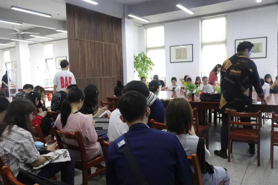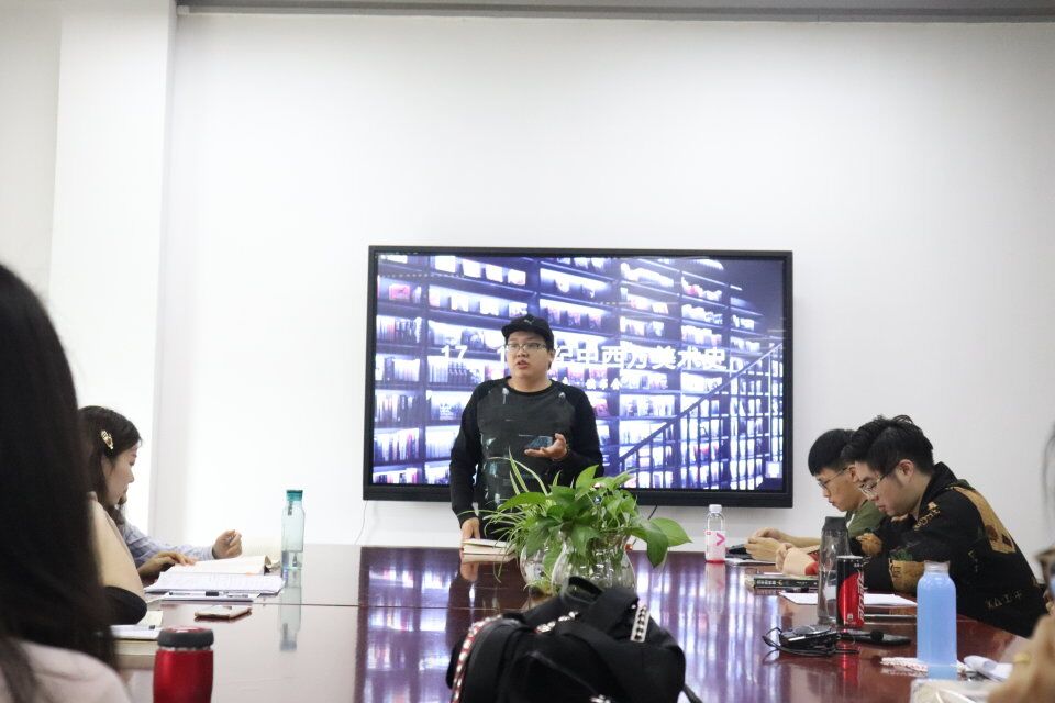 第二期读书会首先分享书籍的是袁祉祎同学,她分享的书是《气势撼人》。这本书用非传统的方式来写晚明时期的绘画史,此方式从作品中的小技法出发,发散到画派甚至是大现象。袁祉祎同学就中西方艺术互相影响,进行了对比说明。她表示,作者的观点——晚明艺术是西方中心论且受西洋绘画影响,她对此持保留意见。紧接着,胡业浩同学总结了前几位同学分享的书籍,并表示,复杂的背景环境造就了艺术的灵感,这就是混乱时代的魅力。接着,刘露萌同学推荐了《东西方美术的交流》。她认为由于当时的传教士无法接触精品所以才片面的否定中国艺术。她还指出西方认可中国园林艺术的造型美,认为这是一种无序之美,是东方最高境界。接着她提出,中西方最根本不同不在艺术本身,而在于社会意识、伦理观念等非物质的原因。随后,何帆同学分享了《美的分析》这本书,她先说明了翻译者对于外语书籍的中译本的重要性。她认为,这本书根据创作的直接经验,将创作与理论结合并从不同角度讨论形式美。她指出此书与生活息息相关,并提出规则也有适度原则。接下来,卢谨同学分享了三本书,分别是《VISITORS TO VERAILLES-From Louis XIV to the French Revolution》、《文艺复兴艺术简史》、《世界美术简史》。她表示,读书要找自己的兴趣点,阅读外文文献时要利用一开始的热情把书读完,并建议同学们多去图书馆阅读外文书籍和期刊。随后,老师和同学们进行了多方面的讨论。任珊珊老师建议同学们本科期间用中文解决问题,并提出语言学习与专业阅读不能混为一谈,不要让语言学习来打断专业学习的热情。紧接着,余其彦老师提出学习的过程一定不会是快乐的,学海无涯苦作舟,但同学们只要坚持下来,就能体会到收获知识的快乐,并建议同学们阅读专业书籍,培养自己的语言能力,为论文写作打基础。接着,林春衍同学提出,兴趣可以是阅读的选择要素,但不是唯一要素;阅读时状态不好先粗略过一遍,之后再慢慢阅读。最后,交流会在轻松愉快的氛围下结束。