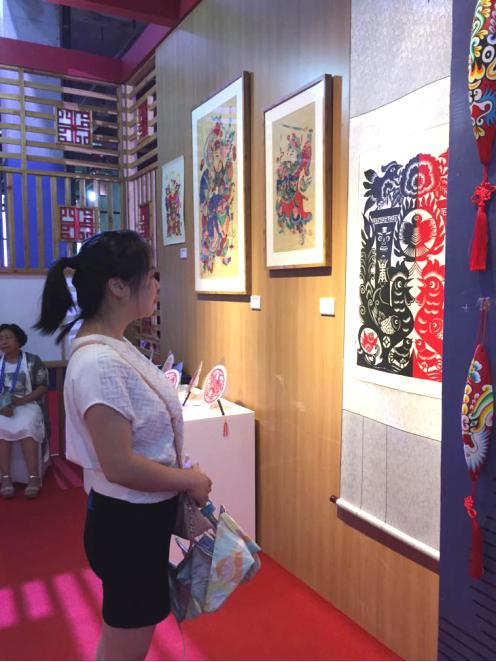 (老师在很认真观赏非遗节作品展览)