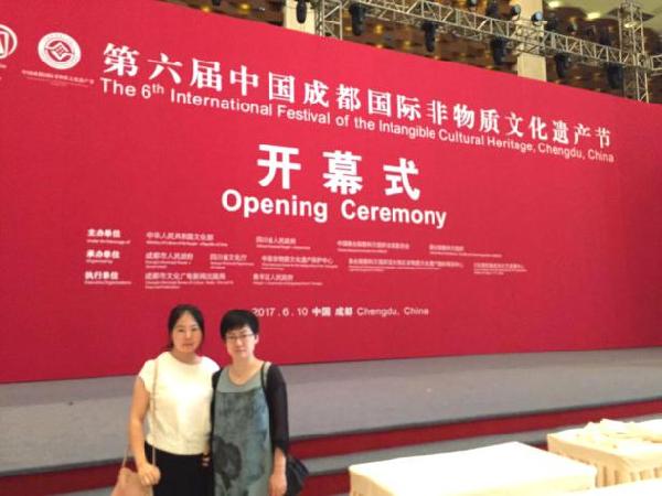 (喻琴老师和崔琳琳老师参加此次非遗节开幕式合照留念)