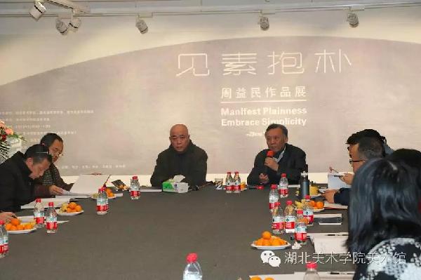 2016年12月3日,“见素抱朴——周益民作品展”在湖北美术学院美术馆开幕。本次展览由湖北美术学院、湖北省美学学会、湖北省美术家协会共同主办,湖北美术学院美术学系承办,清华大学教授、博导陈池瑜,北京大学教授、博导李松,浙江大学教授、博导沈语冰,日本陶艺家池端宽,湖北省原副省长、原人大常委会副主任刘友凡,湖北省美术家协会常务副主席吴汉东,武汉大学教授、博导刘纲纪、邹元江、彭富春,湖北美术学院院长、博导徐勇民等省内外专家、学者出席了展览开幕仪式。