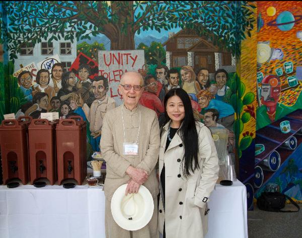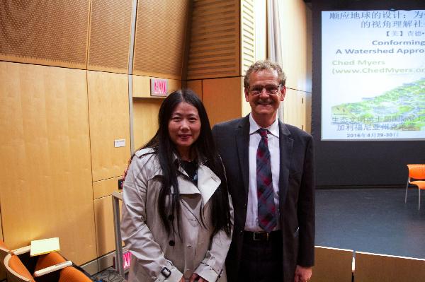 (图为,石秀芳教授与美国国家院士小约翰柯布)