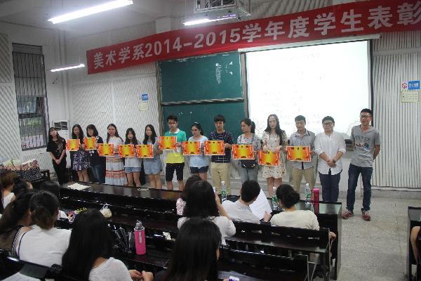 (通讯员:夏运昌 )为了营造创先争优的良好氛围、创建优良的学风和系风,美术学系于6月9日下午5点半在A12-105教室举行了2014-2015学年度学生表彰大会。美术学系党总支陈美玲书记、辅导员欧阳老师、办公室主任匡老师出席了本次大会。