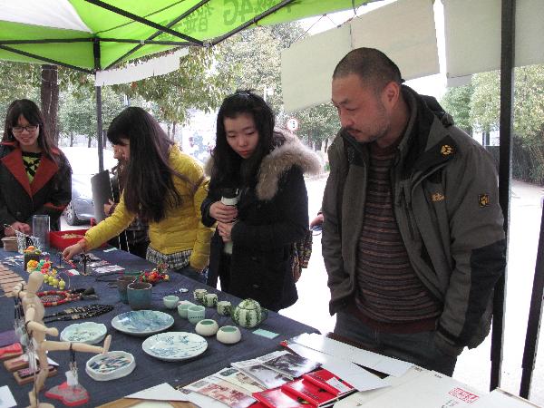 (通讯员 梁庆雪 蔡棋琬)2014年12月9日中午11点,美术学系在食堂门口对面举行了一年一度的“一系一品”活动。继不久前美术学系成功举办了创意市集活动,得到了学校各系部老师和同学们的支持和好评,并表示期待多开展此类活动。借此“一系一品”活动,美术学系举办了创意市集第二季,也同样吸引了各大系部同学们的关注,掀起了一股校园内艺术品交易的热潮。