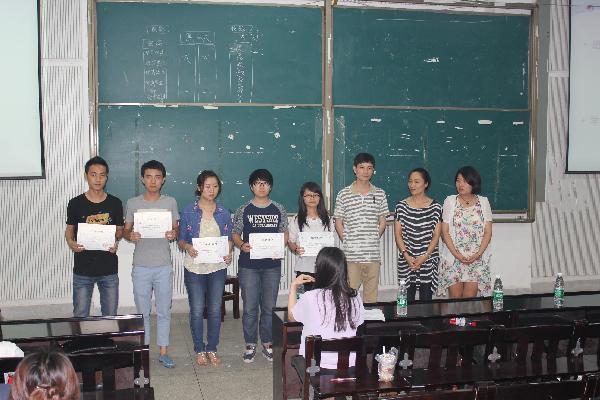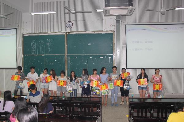 大会第五项,优秀寝室奖状以及奖品的颁发。“优秀寝室”称号的获得包含了寝室所有人员的共同努力,从中看到室友亲如一家的和谐画面,虽然只是一些简单地生活用品,但他们同样如获珍宝。大会最后一项便是隶属我系的五大社团做本学期最后的总结,简短的陈述、负责的态度对我系社团工作交了一份满意地答卷。