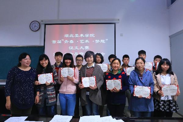 (通讯员 周泽阳)湖北美术学院首届“青春·艺术·梦想”征文大赛颁奖典礼于3月25日晚7:00在A12教学楼 209教室举行。我系共14名同学获奖。其中刘畅同学散文作品《旧时光是个美人,但我更喜欢......》喜获一等奖;黄宓同学散文作品《把梦留给明天》荣获二等奖。此外还有毕雪艳、周泽阳等五名同学作品获优秀奖;谢静、王畅畅等七名同学获得提名奖。