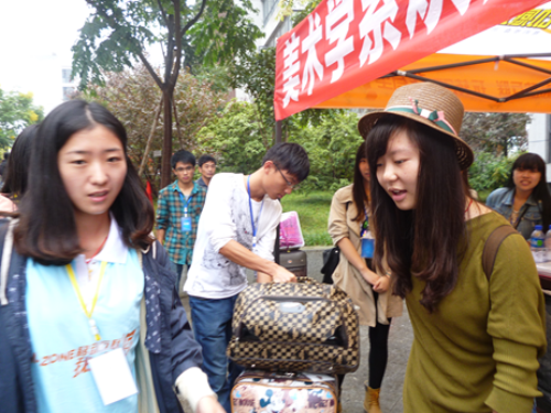 (通讯员 何文婷 毕雪艳)9月6、7日分别是2013届本科生、研究生的报到时间,为践行党的群众路线,为新生及其家长提供温馨便捷的服务,美术学系二十二名由党员、入党积极分子及获得助学金的同学们组成的志愿者团队也参与其中。迎新前,为确保迎新活动顺利进行,系党总支对志愿者进行了专门培训,组织志愿者们熟悉迎新线路、明确职责分工,大家对迎新工作充满期待。
