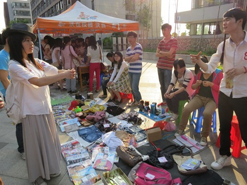 活动从上午11时开始一直持续到晚上7点。活动伊始,各班参与义卖的同学就带着自己的“货物”进驻到已划分好的区域,开始摆摊叫卖。纵使烈日当头,参与义卖的同学依然热情洋溢。此起彼伏的叫卖声吸引了许多“顾客”的目光,路过义卖点的同学也纷纷停下脚步,在众多小物件中挑选自己心仪的物品。因为是爱心义卖,所以价格都很便宜,许多同学都愿意献出自己的一份爱心。并且在活动中,每个参与进来的同学都会得到一个标有“正能量”的爱心贴纸,让同学们能够从中感受到一种爱心传递的能量,体会到力所能及付出后的社会责任感。以此来象征和激发广大青年学生所应该具有的积极向上的精神。