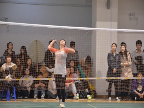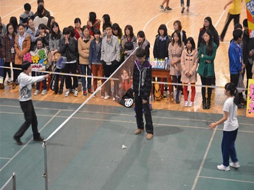 我系在2013年3月21日晚,参加了六进四的羽毛球比赛,大赛在热情洋溢的啦啦操中拉开了帷幕。啦啦队员们身着亮丽的啦啦队服,进行了青春飞扬的表演,赢来了一片欢呼喝彩。我系李瑶、李妍和江彦儒同学与动画学院的选手们进行了激烈的角逐,啦啦队形成方阵、为参加比赛的选手们呐喊助威。