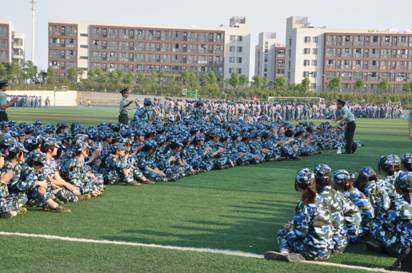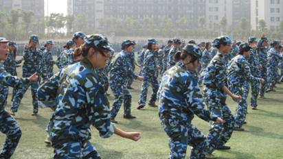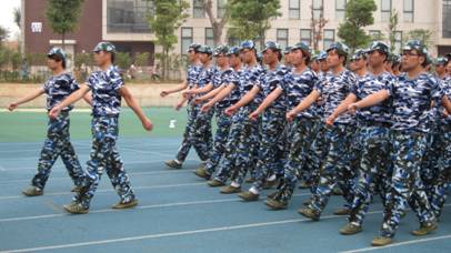 记美术学系2011级军训(组图) 如若湖北美术学院蓝色塑胶跑道是遗落人间的一页五线谱,那么之上跳动的音符则是历时12天军事化训练的2011级新生们。其中,最整齐化一、姿态严整就要数美术学所在的三个方阵了。站军姿、走正步、打军体拳、行进、敬礼、唱军歌,丰富多彩的军事化训练既让同学们体验了军人生活,又磨砺了他们坚强的毅力。美术学系的战士在站军姿教官示范走正步.休息时唱着军歌美术学系女子齐上阵 打军体拳喊着口号 嘹亮振天.男子方阵正行进.巾帼英豪接受教官检阅.