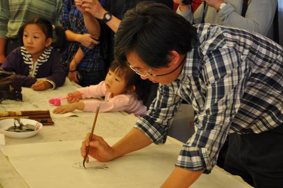 开幕式结束后,系主任周益民、系副主任沈伟等六名教授还在展览现场即兴挥毫,完成了十多幅书法和绘画作品。