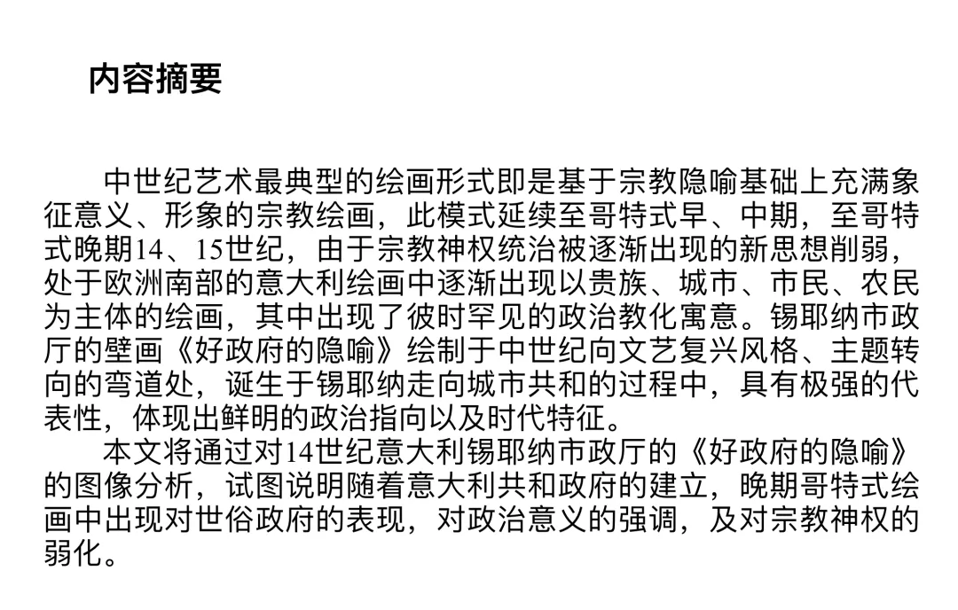 《锡耶纳市政厅中《好政府的隐喻》体现出的政治性转向》
