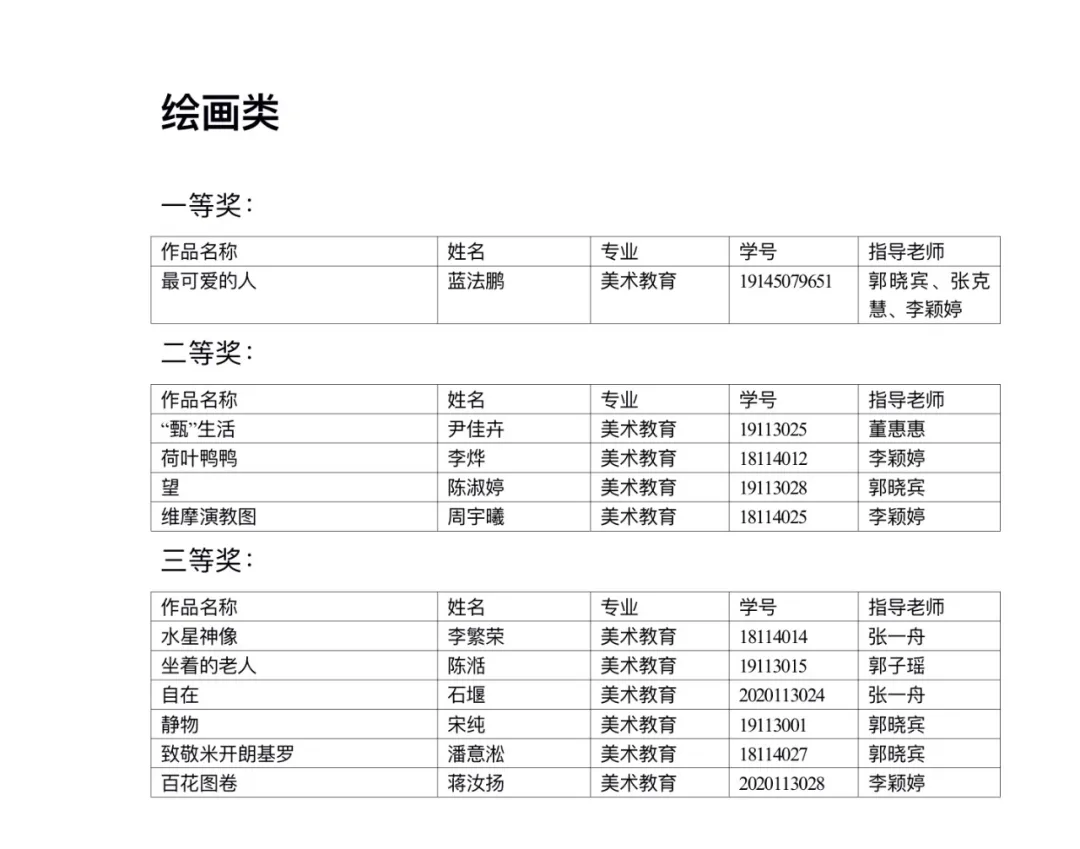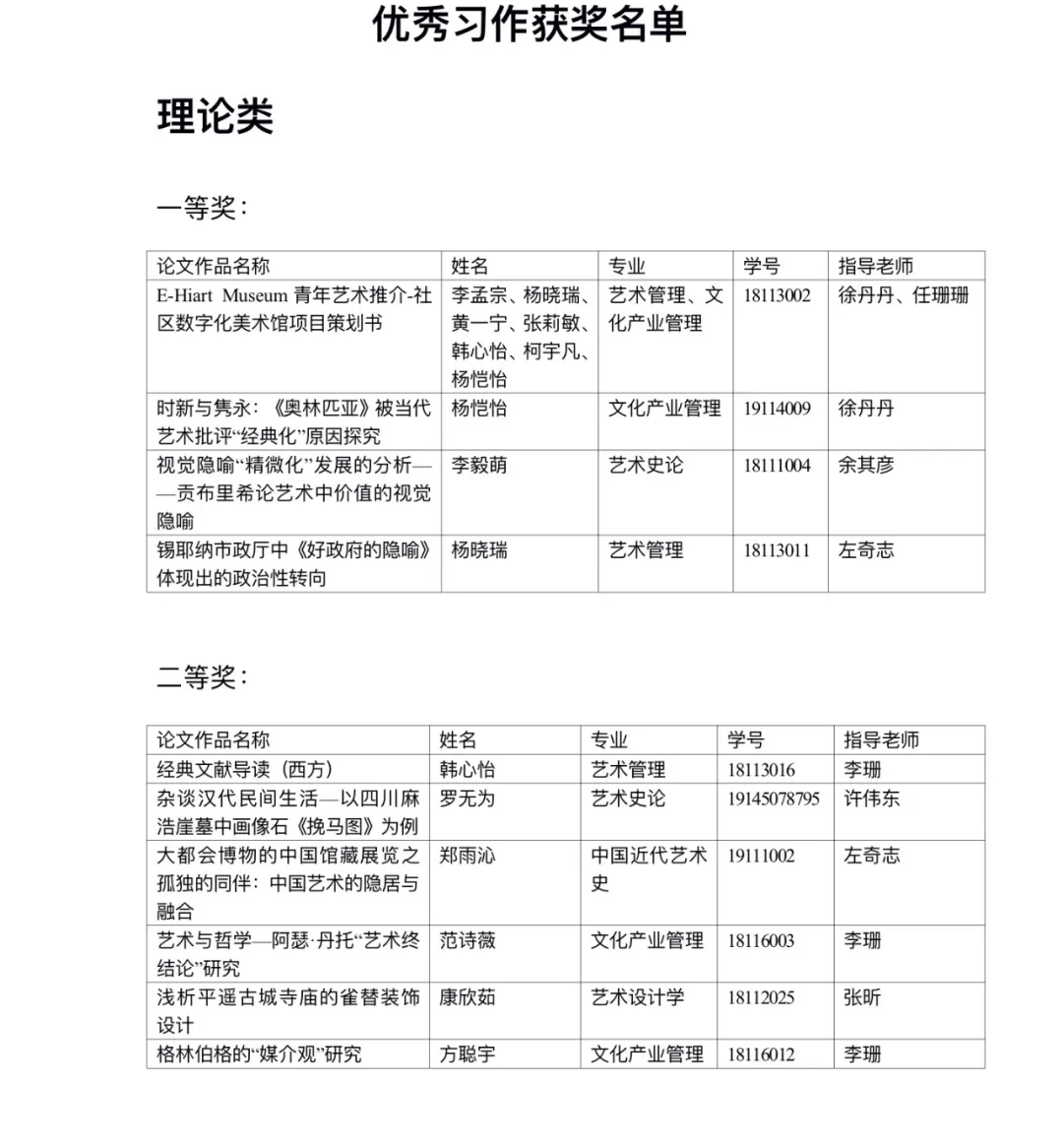 为进一步提高本科基础教学质量,调动学生学习积极性,推动艺术人文学院教学发展,我院 “2021年度艺术人文学院优秀习作奖”活动启动;经过评委老师们的评选,共选出获奖作品29件;其中理论类专业18件;绘画类作品11件。