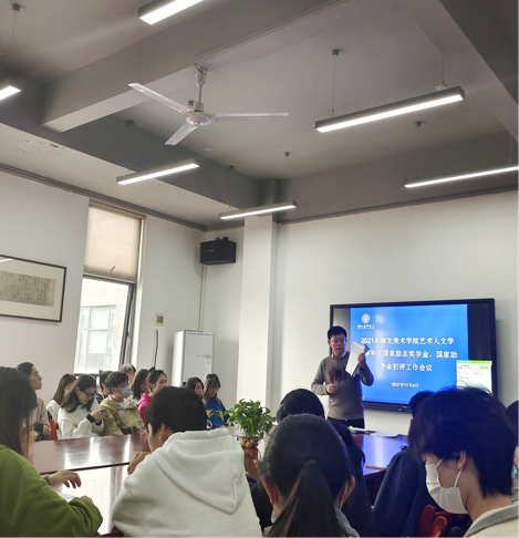 (通讯员:王一为)为了落实省教育厅和湖北美术学院关于国家励志奖学金、国家助学金的评议工作。2021年11月4日艺术人文学院于A11-308召开了2021年湖北美术学院艺术人文学院本科生国家励志奖学金、国家助学金初评工作会议。艺术人文学院辅导员周全老师及各年级学生代表参与本次会议评审工作。