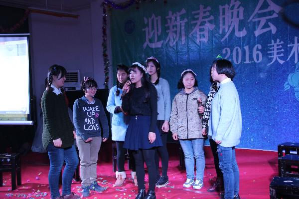 (通讯员 蒋蝶 黄甜甜)新年新气象,青春不散场,美学绽风华。新的一年,为展现我系风采,2016元旦晚会于12月30晚在教学楼A11-307教室隆重举行,出席此次晚会的嘉宾有美术学系周老师、陈老师,欧阳老师,李老师,洪老师,匡老师。校学工部领导及老师出席晚会。晚六点半,在歌声中首先播放“回顾2015,展望2016”的新年寄语视频,随后在周益民老师和陈晶主任的热情洋溢的致辞和全场热烈的掌声中,美术学系2016元旦晚会拉开序幕。