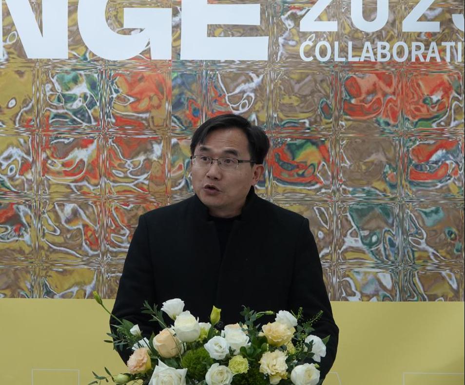 湖北美术学院党委副书记、校长周峰致辞中认为本次展览提供了一个中英艺术学习的桥梁,是我校与曼彻斯特城市大学友好交流的见证。他表示新时代背景下的艺术包含着文化、历史等含义,我们要推动艺术设计教育更好服务和赋能经济社会的发展。周峰校长在发言中谈到,此次交流会是两个学校的学生围绕共同的主题在不同的社会背景发展历程下,创造出不同的艺术作品,一方面展现了两个国家的文化差异性,另一方面也能促使了两个学校对待不同艺术的相互学习和欣赏,最重要的是能展现两校大学生们对当下及未来艺术的创新和思考。同时也期待着这一交流项目能够为双方带来更多的机遇与挑战,为文化交流和艺术教育的发展注入新的活力。