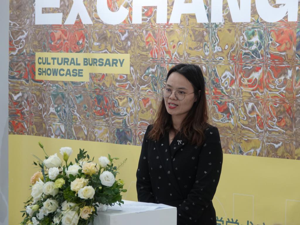 最后是本次活动的英方联合策展人副教授瑞秋·凯莉致辞。她向在场各位详细介绍了曼彻斯特城市大学的同学的作品以及促进这次中英两校合作交流的过程。并向所有促成本次活动的各方合作伙伴们表示衷心感谢。