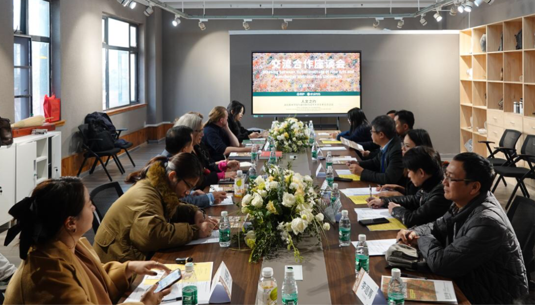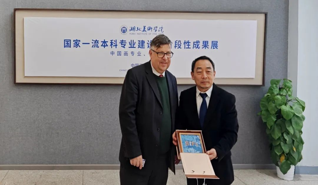 2023年11月28日,湖北美术学院与英国曼彻斯特城市大学交流活动于湖北美术学院藏龙岛校区成功举办。本次交流活动分为“共融·共生”展览开幕式、师生研讨会、交流合作座谈会、主题讲座:叙事与地点四个部分,旨在促进湖北美术学院与英国曼彻斯特城市大学的友好交流与合作,加强中英两国的艺术文化交流。湖北美术学院校长、党委副书记周峰,英国驻武汉总领事麦多明,艺术人文学院副院长李珊,手工学院副院长陈日红,曼彻斯特城市大学国际交流负责人、艺术人文学部蕾切尔·维达·诺尔斯(英),PGT设计专业副教授瑞秋·凯莉(英)出席开幕式并致辞,手工艺学院副院长陈君为本次活动提供学术支持。此外,出席活动的嘉宾还有艺术人文学院、手工艺学院专业教师,国际交流合作与合作处负责人、曼彻斯特城市大学专业教师等。