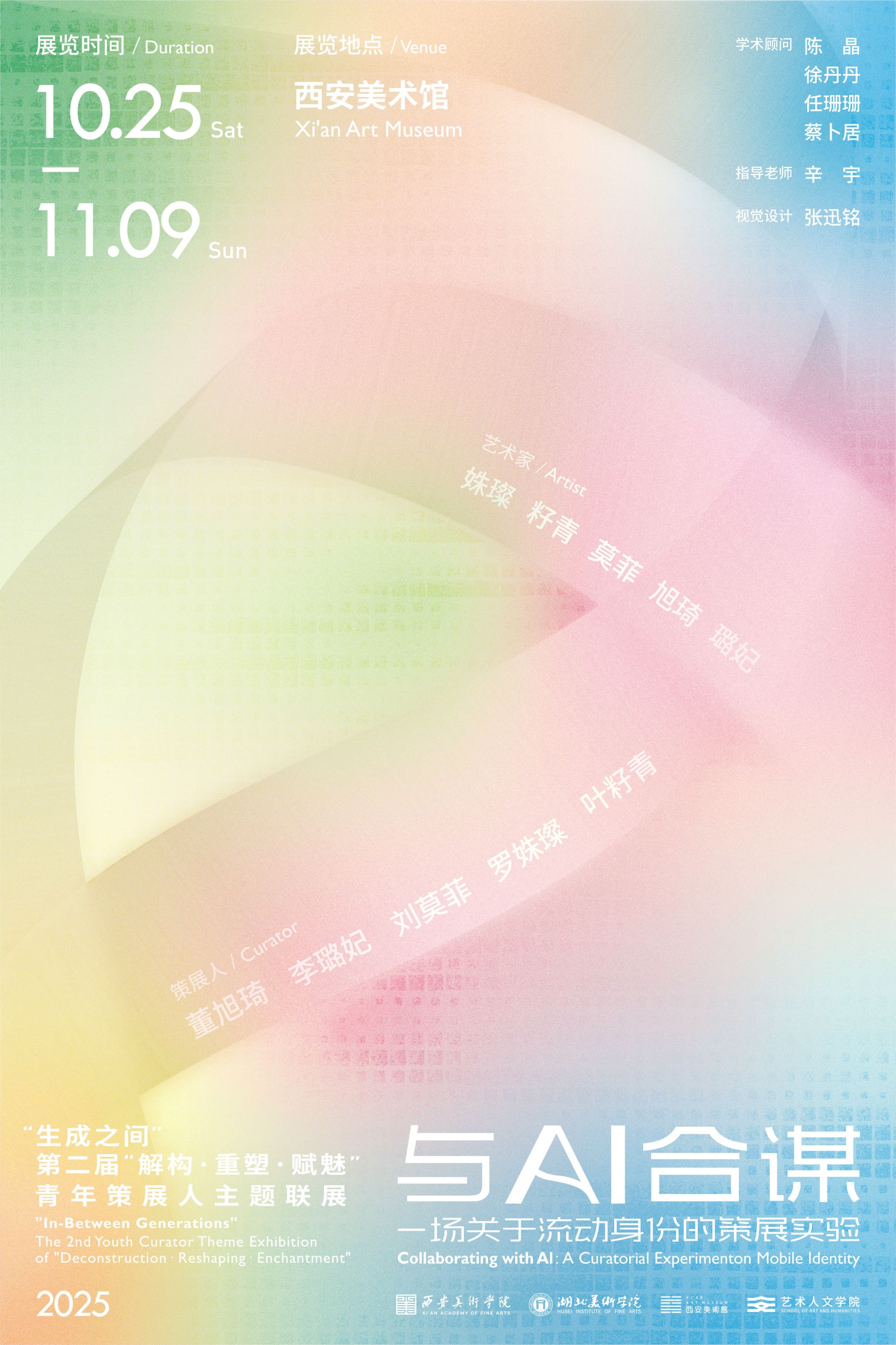 “生成之间”第二届“解构·重塑·赋魅”青年策展人主题联展由西安美术学院主办,将于2025年11月1日在西安美术馆开幕。本次联展中,湖北美术学院展区以“与AI合谋:一场关于流动身份的策展实验”为题,以法国学者雅克·拉康( Jacques Lacan)的“镜像理论”与古希腊哲学家柏拉图的“床喻”为理论支点,构建起一个由三重流动结构组成的叙事框架。通过策展人与AI共创虚拟艺术家的实验,探讨人工智能时代创作权、策展权与身份如何交错流动。
