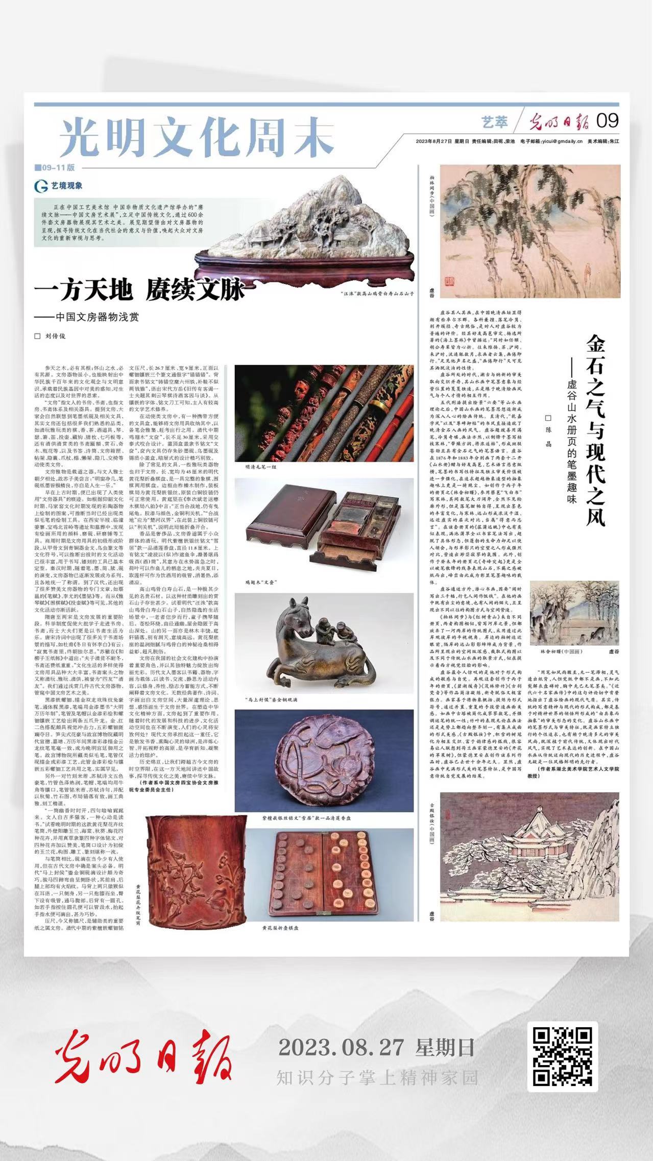 8月27日,《光明日报》第9版“光明文化周末”专刊“艺萃”专栏刊发我校艺术人文学院陈晶教授的署名文章。文章的标题为《金石之气与现代之风——虚谷山水册页的笔墨趣味》。柏林间步(中...