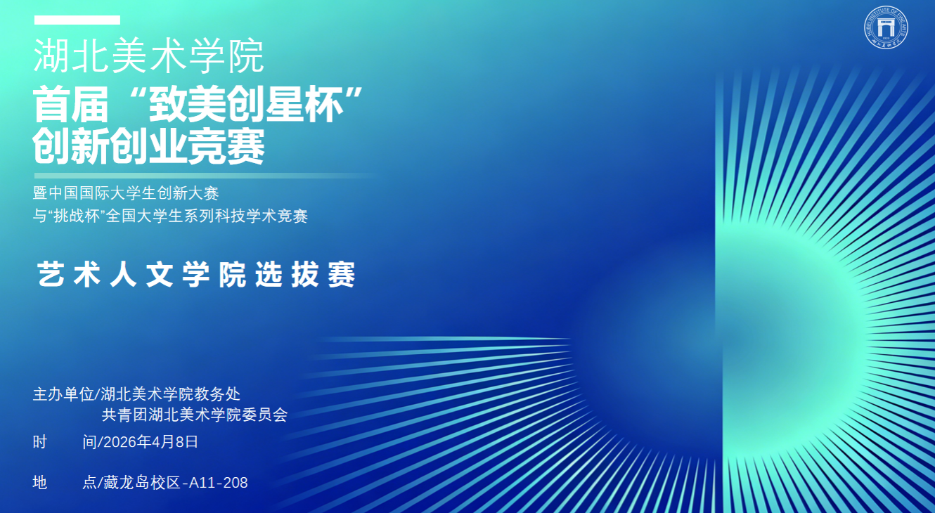 为激发学生创新创业热情,挖掘艺术与创新融合的潜力,培育高素质创新创业人才,2026年4月8日,湖北美术学院致美创星杯创新创业竞赛艺术人文学院院赛在藏龙岛校区A11-208成功举办。艺术人...