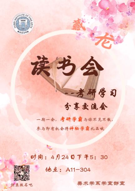 通讯员:陈方亮)为响应学校学风建设月的主题,进一步加强我系学生管理工作,为学生创造良好的学习环境,美术学系将组织开展美学系特色活动——藏龙岛读书会。