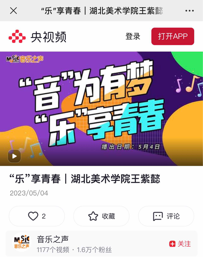 2023年5月4日,值五四青年节之际,中央电视台音乐之声Music Radio栏目携手广大高校青年学子,以“音”为有梦,“乐”享青春为主题,共同抒发青春愿景,追求青春梦想。湖北美术学院艺术人...
