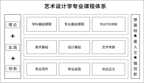 艺术设计学专业以立德树人为根本,秉持“重基础,厚人文,强创新”的人才培养原则,立足于经济社会发展对艺术设计史论研究与应用工作的需要,以学术研究为基础,以理论创新与实践转化为导向,致力于培养拥有宽厚的人文科学素养,掌握系统的设计历史与理论知识、文化遗产知识以及当代设计理论,具有艺术设计史论研究能力、设计策划能力与设计实践能力,能在教育机构、展览机构、文化创意产业及传播机构等部门从事艺术设计教育、研究、策划及实践的复合型人才。
